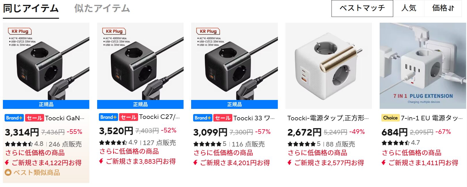 目的の商品を直接探せるだけでなく、より重要なのは、ワンクリックで複数セラーの価格比較ができる点です。複数の販売者の価格、評価、販売数を簡単に比較でき、最もコスパの高い選択ができます。