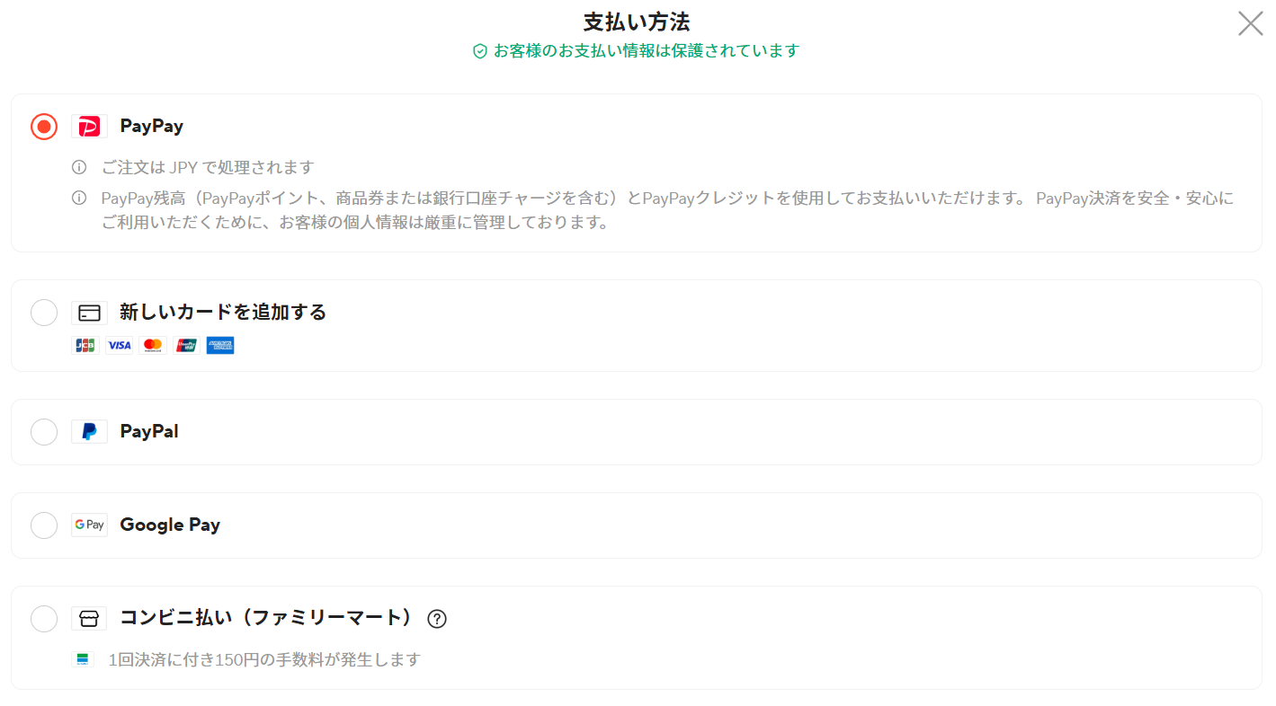 - 現時点では、LINE Pay、Paidy、Pay-easyなどには対応していません。