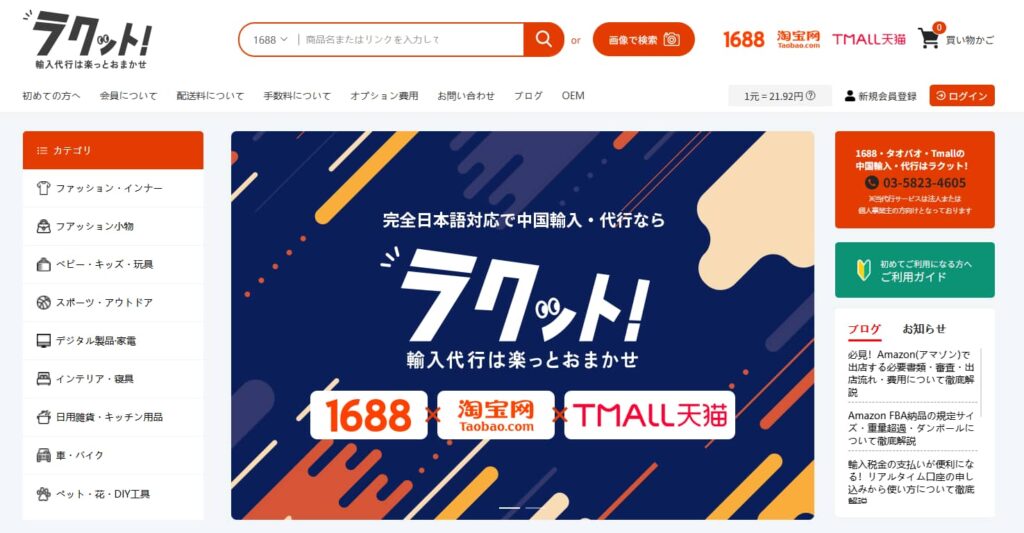 中国国内向けの最大級の卸売サイトであり、「工場直販」の製品が多く掲載されているため、圧倒的な低価格が魅力です。