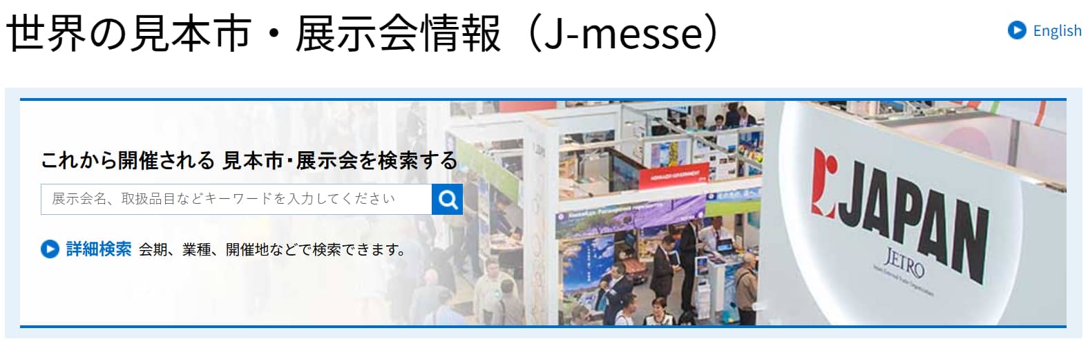 JETRO(日本貿易振興機構)が運営する「J-messe」 は、展示会情報を探す際に便利なデータベースです。