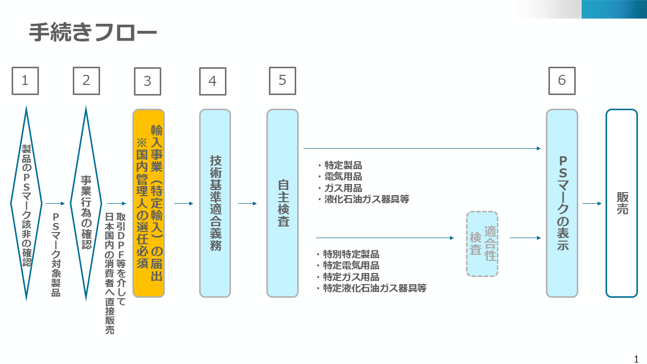 - 安全基準への適合確保:販売する製品が日本の基準に適合するよう、必要な検査・認証(PSE、PSC等)を満たすこと。